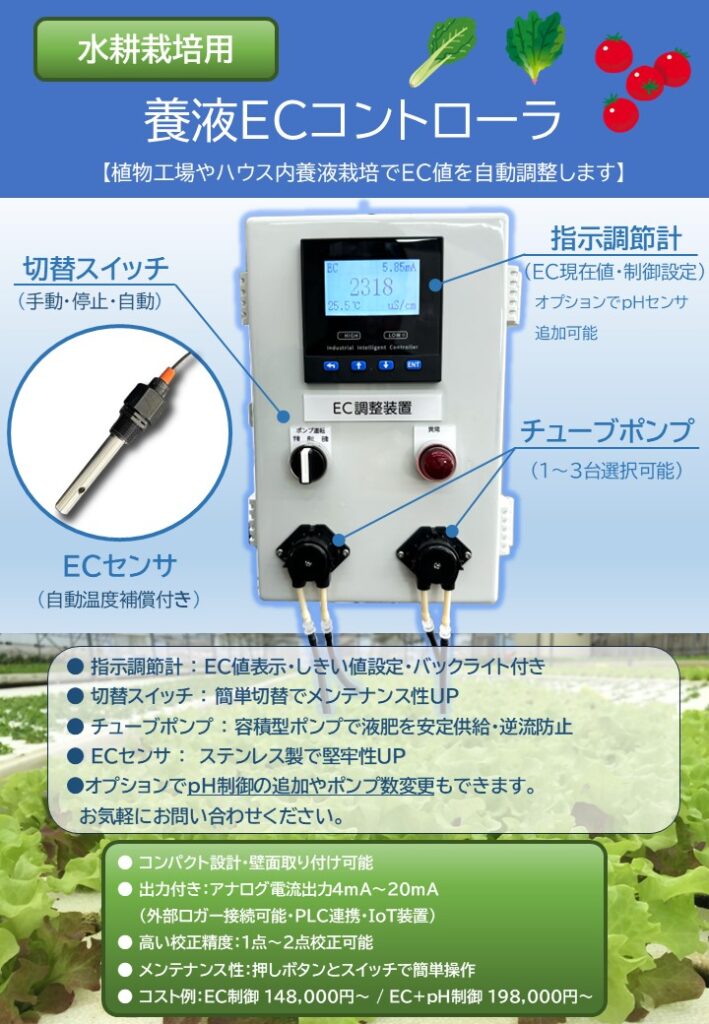 【新製品開発のお知らせ】水耕栽培向けEC調整コントローラを開発しました。